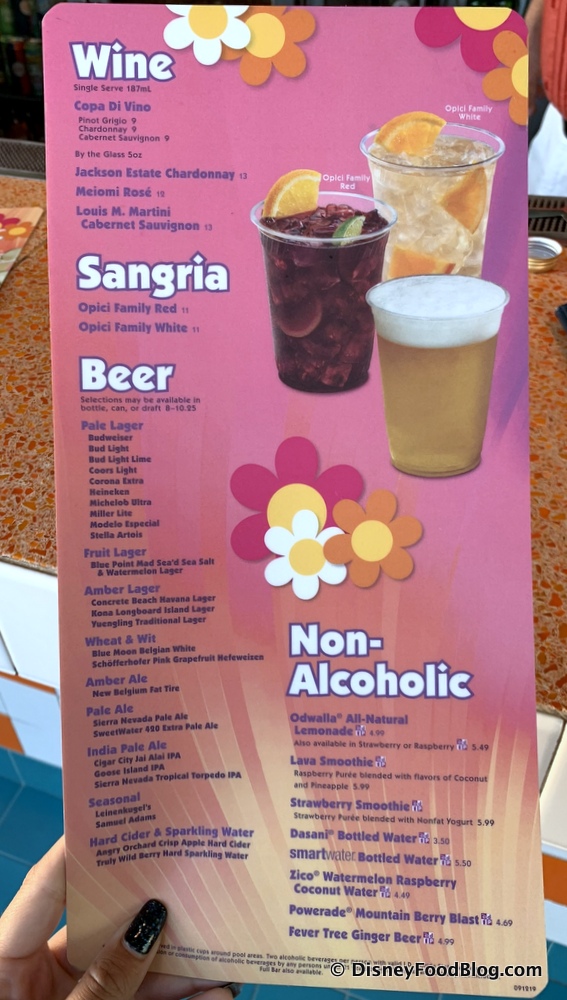 It looks like Copa Di Vino has replaced the bar’s former Woodbridge wine offerings, but everything else appears to be unchanged! We wonder if the Art of Animation’s pool bar has also made the switch!