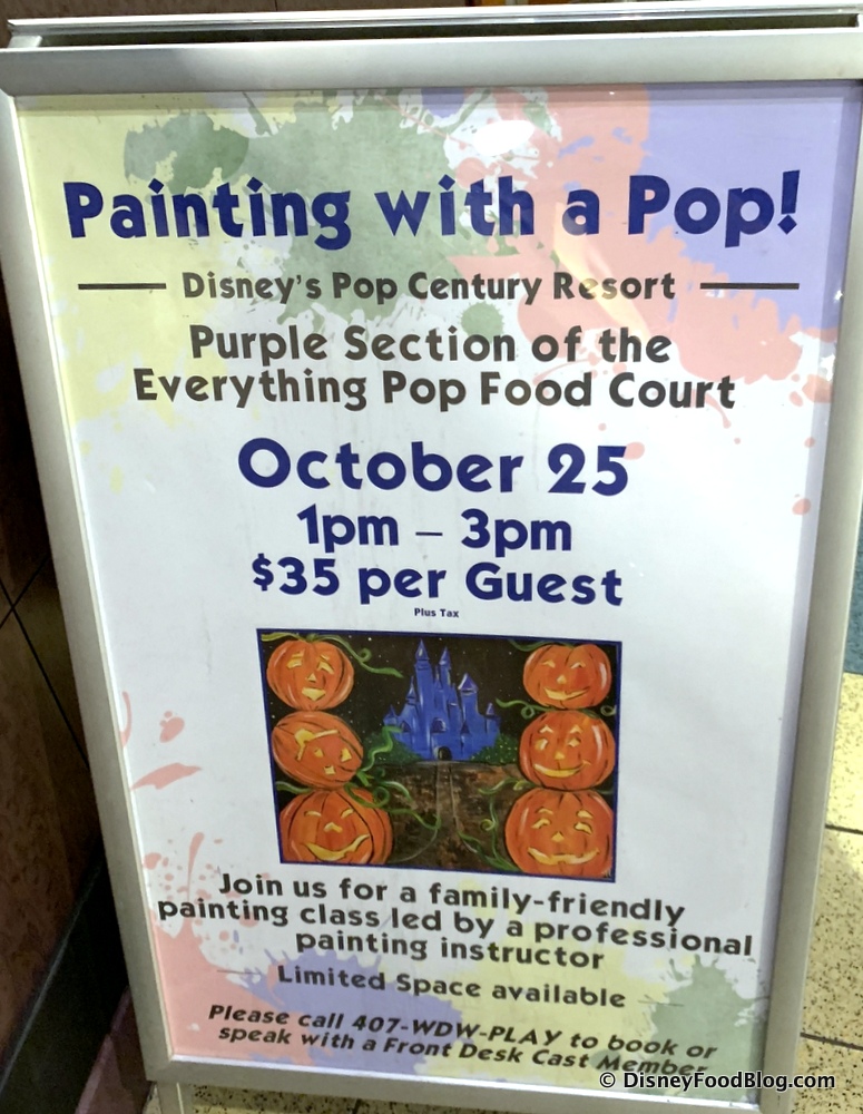 We also spotted this cute Painting with a Pop! activity that Disney’s Pop Century will be hosting on October 25th. Guests will have the opportunity to create their very own spooky masterpiece of Cinderella’s Castle and lots of playful-looking pumpkins!