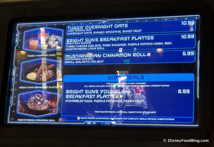 And while the names on Docking Bay 7’s breakfast menu were also altered, the items still have Star Wars-themed titles unlike their lunch and dinner counterparts — weird, right?