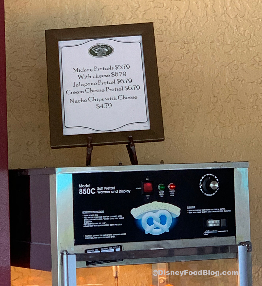 Remember those specialty pretzels we recently told you about? These have been available at this spot for a while now, but this is the first time we’ve noticed a sign! Yep, you can grab a drink and a pretzel in one spot! So if you’re looking to eat your feelings after that $18.00 Hurricane, you can grab a Mickey Pretzel, Jalapeno Pretzel, or Cream Cheese Pretzel here.