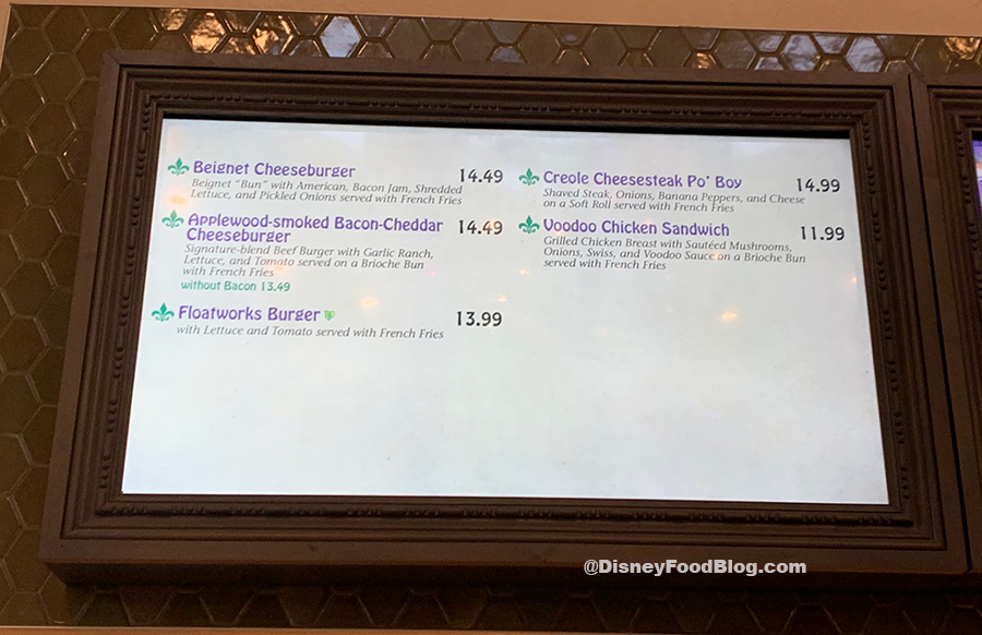 Let’s head to Sassagoula where we noticed they’ve renamed out their previous Bacon Cheeseburger and are now calling it the Applewood Smoked Bacon Cheddar Cheeseburger (fancy, fancy!). If you’re trying to resist the sinful Beignet Cheeseburger, there’s now a new plant-based burger option playfully named the Floatworks Burger.