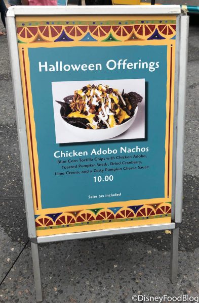 The Chicken Adobo Nachos have made their tasty debut as the Halloween offering at Springs’ Street Tacos Food Truck in Disney Springs!