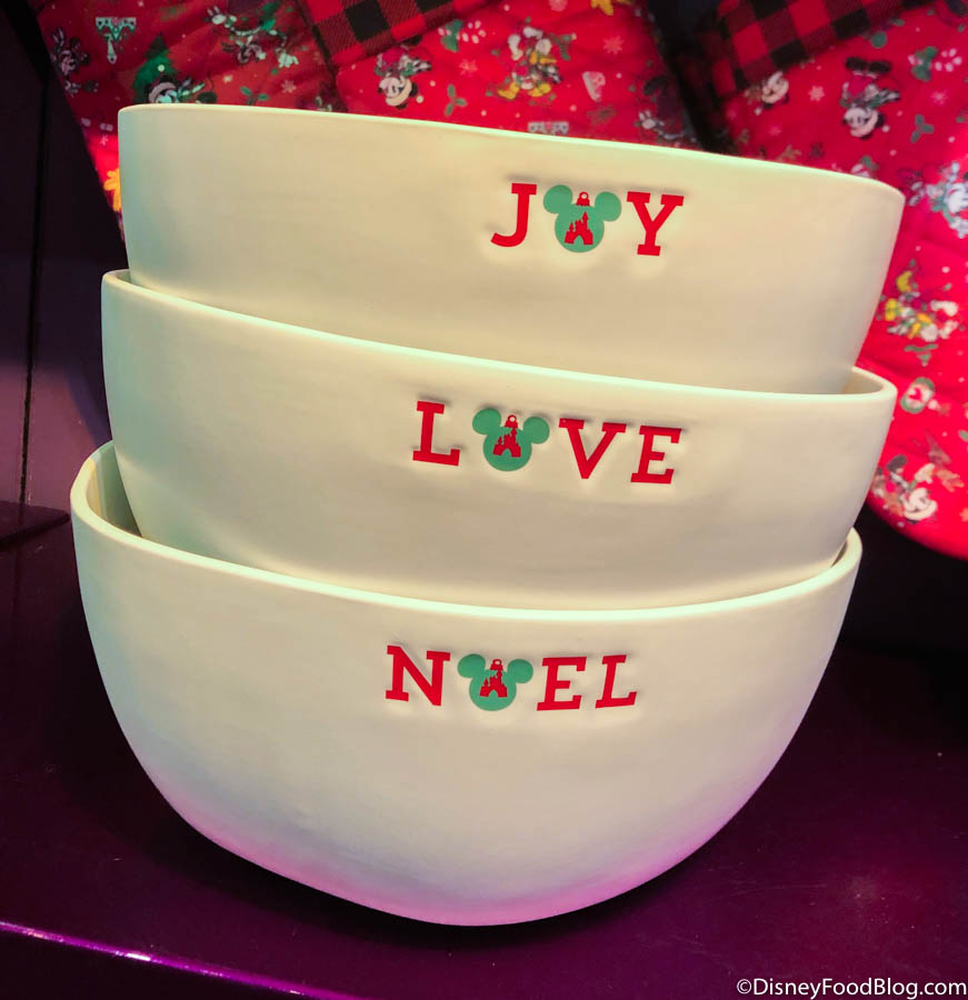 This irregular serving bowl costs $24.99 and can be purchased online here. It features all 3 festive words stamped into the sides…