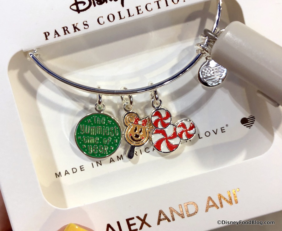 We found all of these new Holiday Alex and Ani Bracelets at Epcot’s Mouse Gear today, but we have a feeling they’ll be wassailing to other Disney parks soon, so be on the lookout for ’em if you hope to grab them this holiday season!