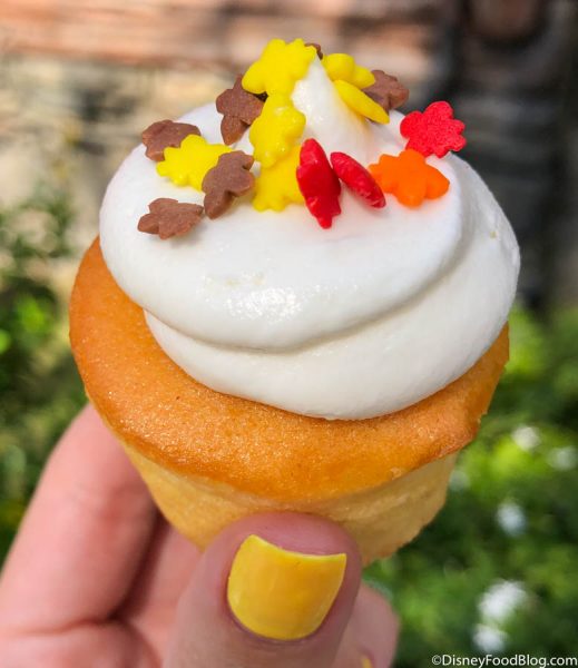 Next up, we have a vanilla mini cupcake with a swirl of white buttercream and a few Fall sprinkles on top. This cupcake represents “Wind” with the blowing leaves. The sprinkles gave a nice crunch to the bite.