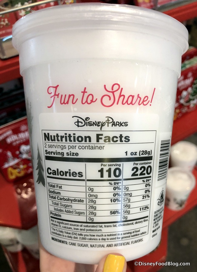 Actually, Vanilla Snow is the flavor of this tasty-looking Holiday treat! And while the back says, “Fun to Share!” We think having this tub of delicious Cotton Candy all to ourselves also sounds like fun! Just don’t tell Santa — we’re aiming for his good list this year!