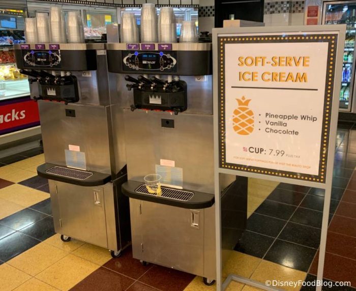 The machines have pineapple, chocolate, and vanilla soft-serve options. You can also swirl vanilla and pineapple or chocolate and vanilla.