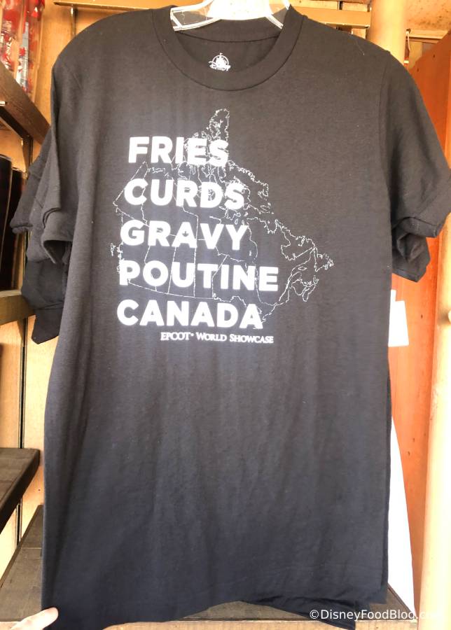 A slew of Disney World guests are positively obsessed with poutine, so it’s no surprise that we’ve seen some fun new poutine tops show up in Epcot. Check out this graphic statement shirt that lists the Canadian necessities.