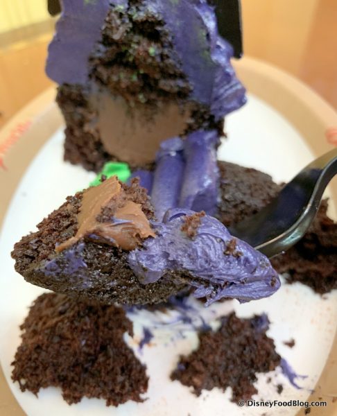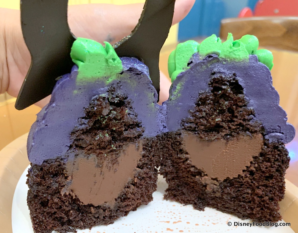 The Maleficent Cupcake had the best flavor, overall when we enjoyed all three elements — chocolate cake, caramel ganache, and buttercream — all in one bite!