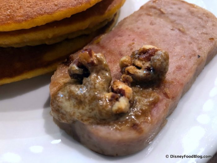 And when some of the buttery pancake topping accidentally found its way on top of our spiced ham, there were Halloween fireworks, and we’re not talking about the ones at Mickey’s Not-So-Scary Halloween Party!