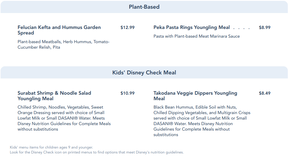 Another change in this round of Docking Bay 7 updates is the move of the “Meat” Marinara from the kids’ menu section to the plant-based section of the menu alongside the hummus dish.
