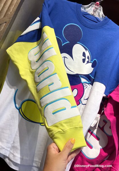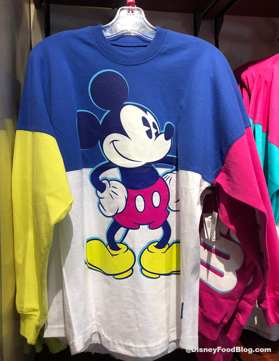 If you’re Team Mickey, your color-blocked spirit jersey features shades of yellow, blue, and pink.