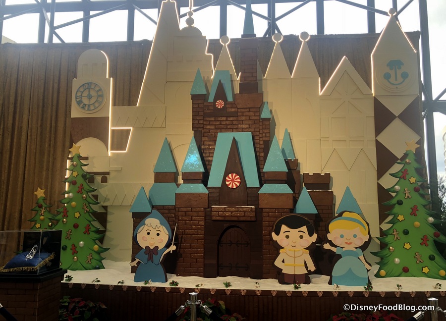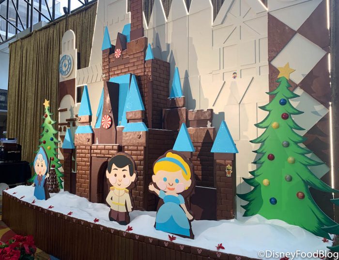 This display is always a favorite and is designed as a tribute to Mary Blair, a formative Imagineer in the designing of “it’s a small world!” as well the artist behind the HUGE Grand Canyon Concourse Mural in the main lobby of the Contemporary! Like last year’s rendition, the 2019 gingerbread castle featured cute versions of Cinderella, Prince Charming, and the Fairy Godmother.
