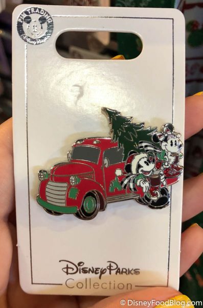 Mickey and Minne are getting ready for the holidays, bringing home a Christmas tree with this cute Truck Pin.