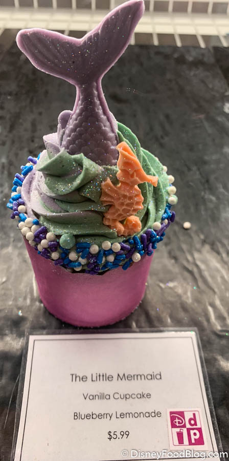 We also spotted the new Little Mermaid Cupcake that we originally found at Old Key West Resort! This pretty treat is $5.99 or a DDP snack credit and is a vanilla cupcake with blueberry lemonade flavors. Yum!