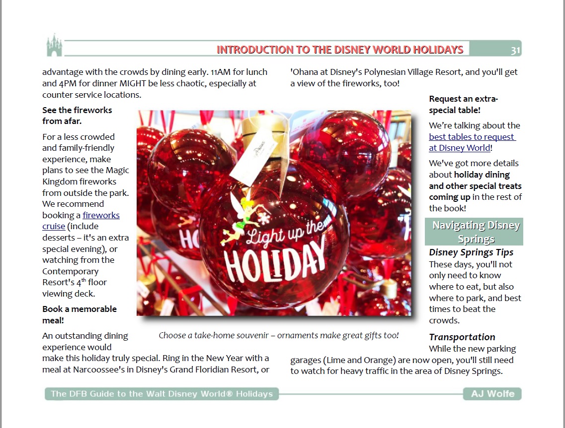 The DFB Guide to the Walt Disney World Holidays 2019 e-Book is chock full of all the info you need to know before you head to Walt Disney World for the holiday season. The fully-updated 2019 edition includes: