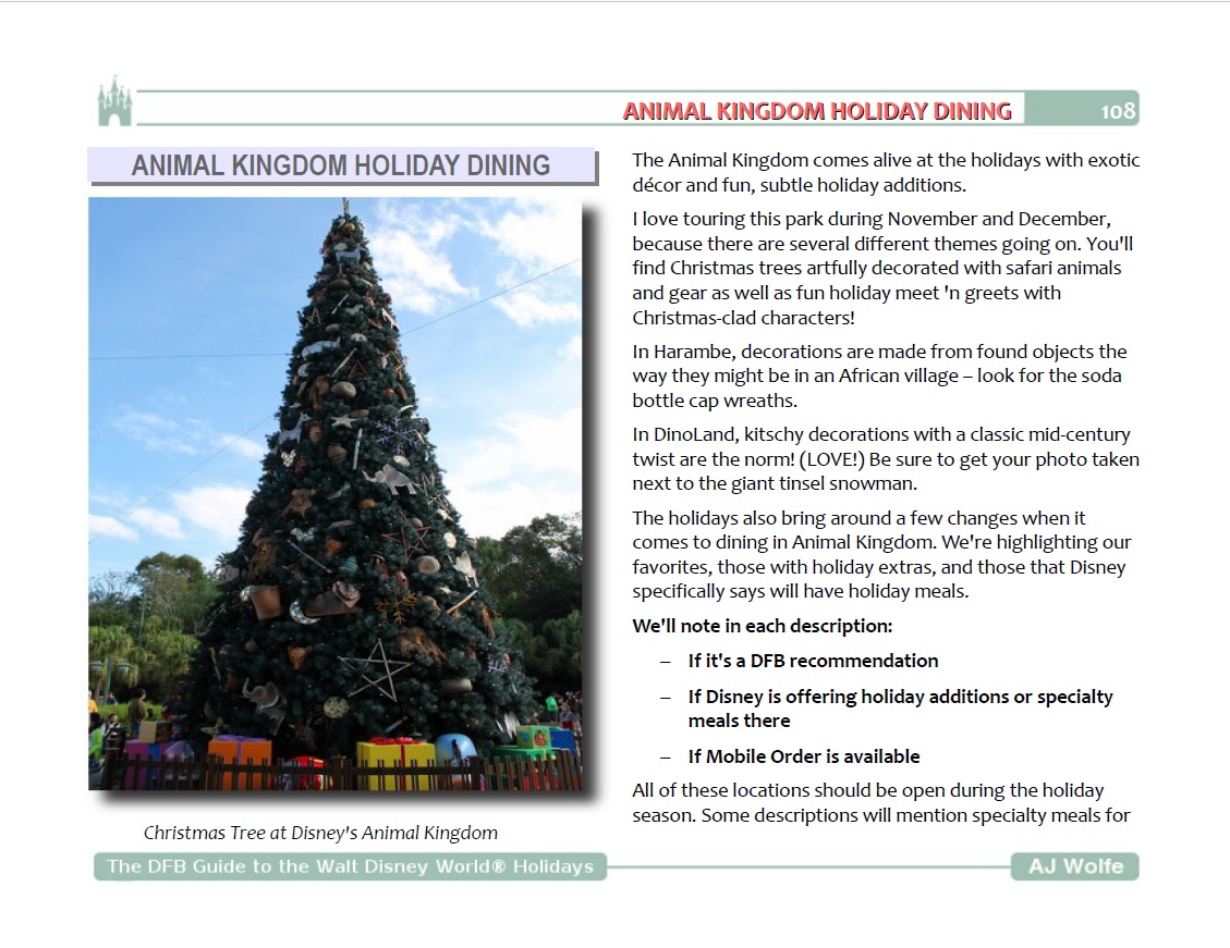 We cover EVERYTHING in this one — not just food! With more than 400 pages of detailed information, over 400 color photos, and multiple bonus extras, this e-book WILL save you time and money during the busiest season in Walt Disney World!