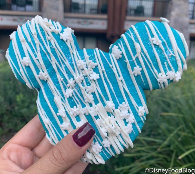 The Arendelle Aqua Mickey Macaron has caught a (snow) drift over to the Roaring Fork at Wilderness Lodge Resort.