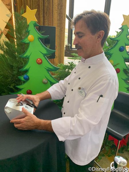 It took 39 bakers at the Contemporary to build the Gingerbread Castle this year! And, you can actually meet one of the talented pastry chefs who worked on it! Jeff Barnes was out greeting guests and signing merch near the Gingerbread Snack Stand.