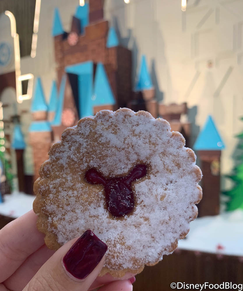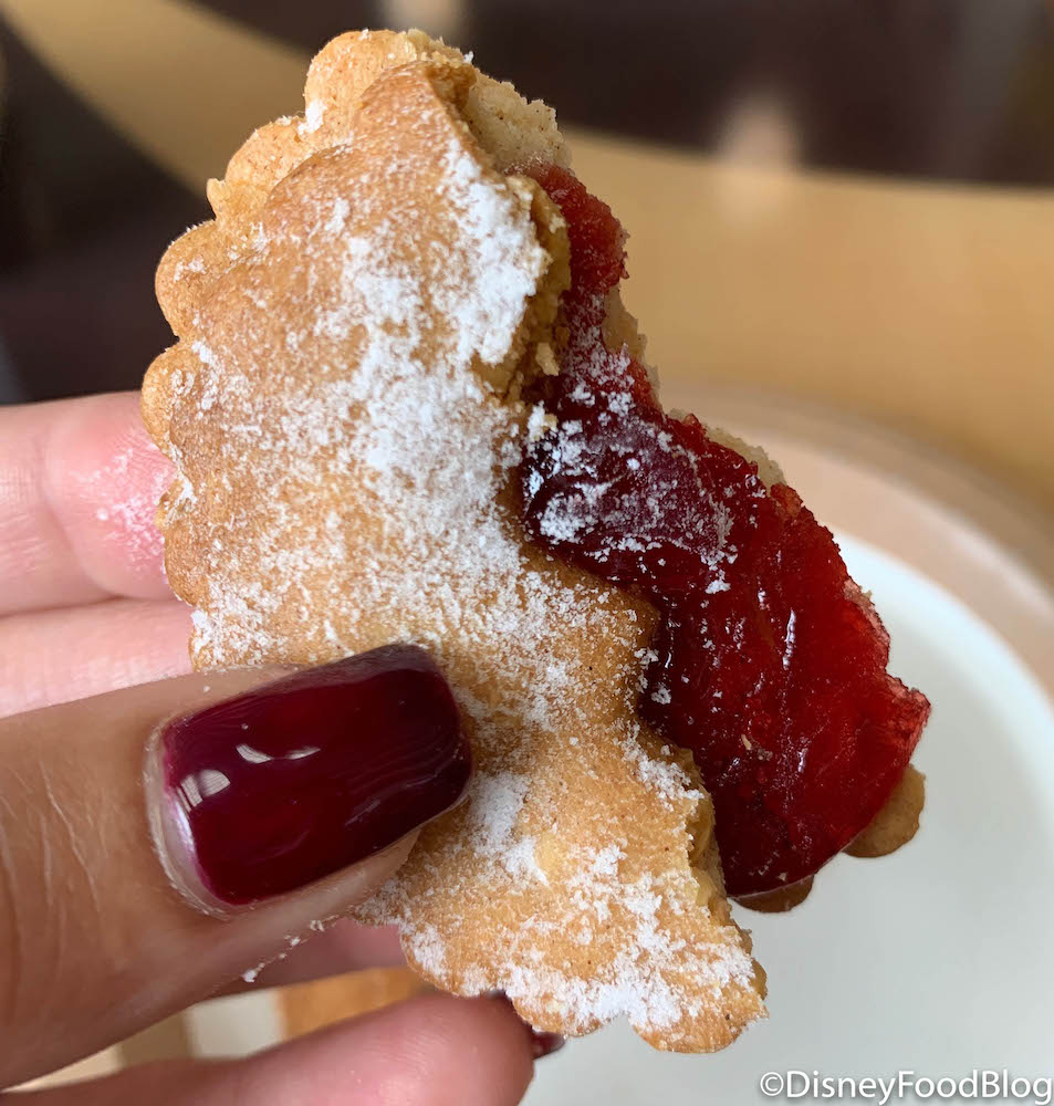 The Linzer Cookie has a cut out of Mickey’s head, filled with raspberry jam, and is topped with powdered sugar. (ADORBS!!)
