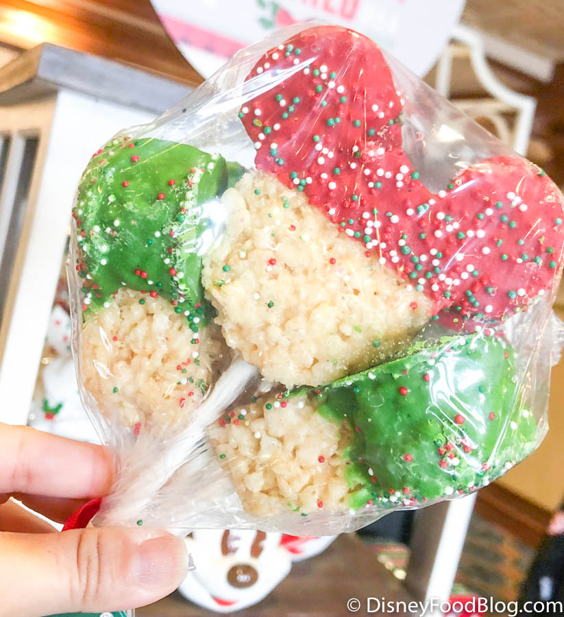 The parks were taken over with various Halloween-themed Rice Krispie Treats these past few months, so it should come as no surprise new offerings have arrived in a variety of Christmas-y styles! These are the well-known, pre-packaged holiday crispies we see every year, but it’s always fun to see them debut!