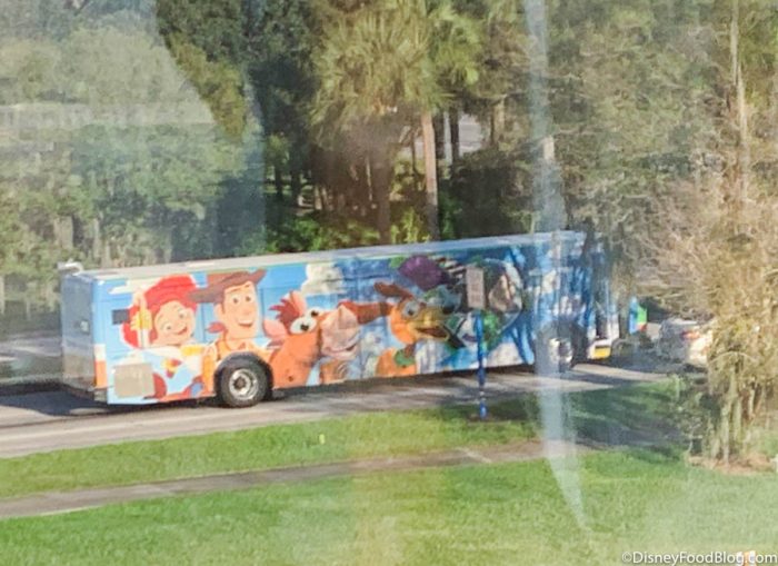 This new bus wrap features all of our fave toys, including Buzz Lightyear, Slinky Dog, Bullseye, Woody, and Jessie (where’s FORKY?!).
