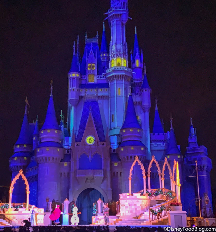 Wrapped up like a Christmas gift to Magic Kingdom, Elsa transforms the castle into a beautiful ice palace, complete with stunning icicle lights (!!!).