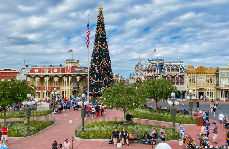 We’ve seen holiday phone cases, delicious treats, Tomorrowland Speedway’s seasonal overlay, the return of the Jingle Cruise, and news of the first castle lighting happening TONIGHT! But, lights have been strung and holly has been hauled ’cause one of our favorite Christmas decorations has been put up in the park!