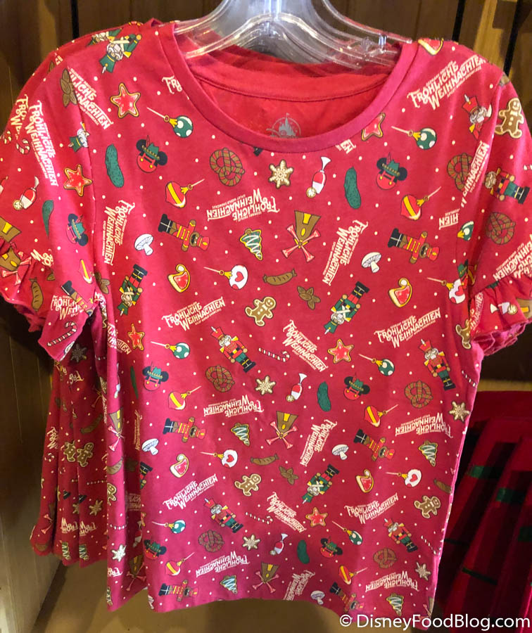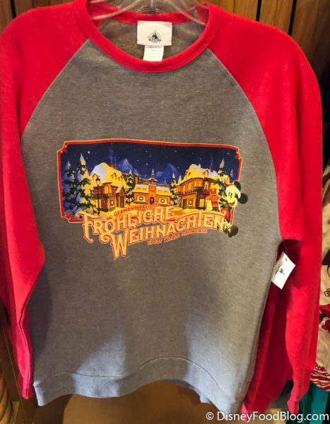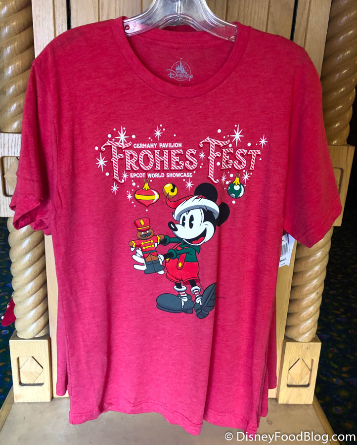 There’s a whole collection of Frohes Fest merchandise at Der Teddybar in the Germany Pavilion! Frohes Fest is German for “Merry Celebration” and is a reference to the Christmas season! Luckily, we’ll be celebrating in style with some AMAZING new merch, including this very festive Red Mickey T-Shirt, which is available for $24.99.
