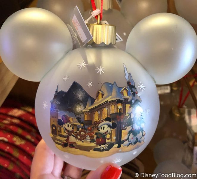 But wait, there’s MORE ornaments! This unique Wooden Ornament for $14.99 comes carved with Mickey and Minnie in a winter wonderland.
