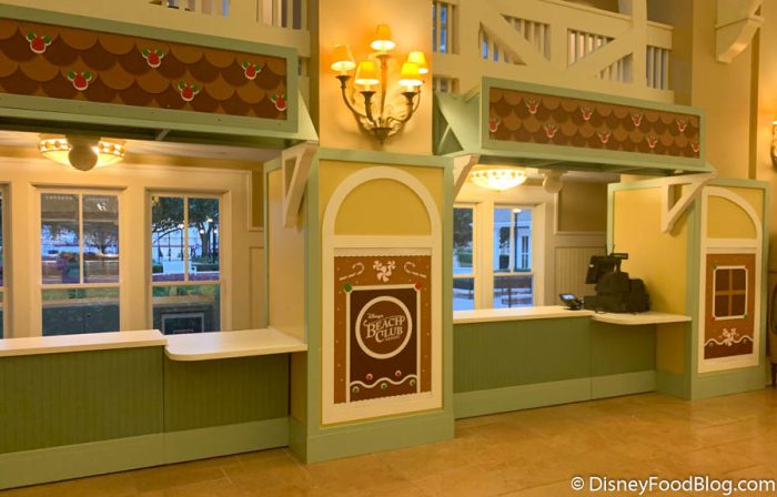 We’re not super sure what these counters are going to be used for. Usually, there are gingerbread treats sold at Beach Club Marketplace with the opening of the Gingerbread Carousel. It’s possible that the gingerbread treats will get their own spot at this new decorated counter area or it could possibly be just pumped up decor for the resort!