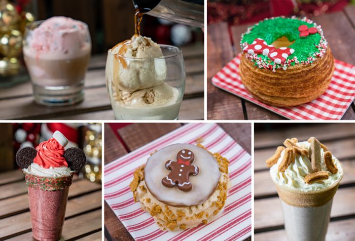 New this year are the Peppermint Mickey Shake featuring a Peppermint cookies and cream shake, lots of whipped topping, holiday sprinkles and decor, and chocolate cream-filled cookie ears. Also new is the Churro Shake (!!!!) which swirls brown sugar-cinnamon ice cream, cinnamon churro cereal, whipped topping, and churro toffee!