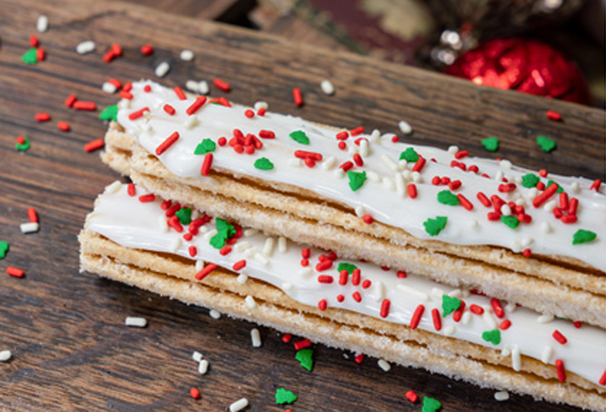 Clarabelle’s Hand Scooped Ice Cream is your stop if you want all things cool and pepperminty! Once again, they’re serving up their festive dipped ice cream cones including chocolate peppermint, red and green sprinkles, and, new this year, crushed candy cane!