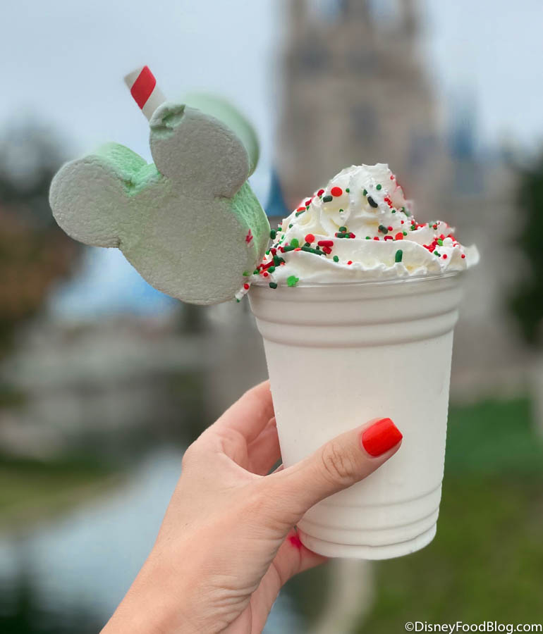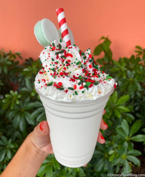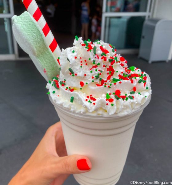 Last year’s shake came with a hunk of green cotton candy, but we’re digging the whipped cream way more! Plus, the Mickey marshmallow straws are still the cutest!!