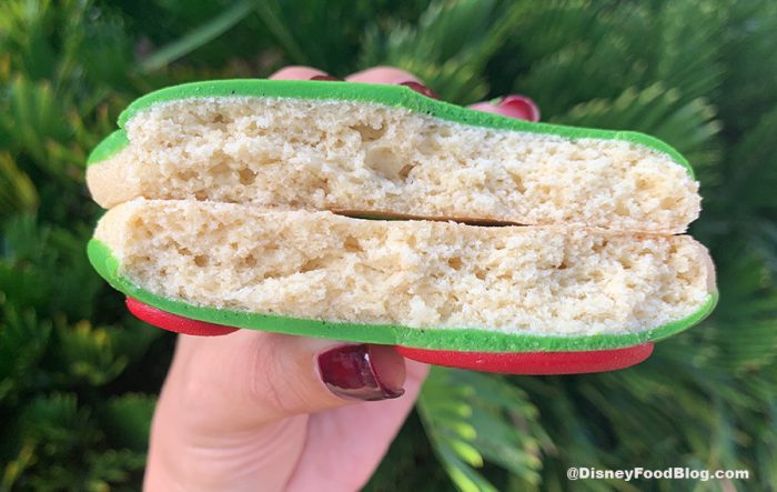We found this pre-packaged treat to be really delicious and make for super fun photo ops! Available from just about every ice cream cart in the park, we now have a seasonal Christmas Lion Paw cookie!