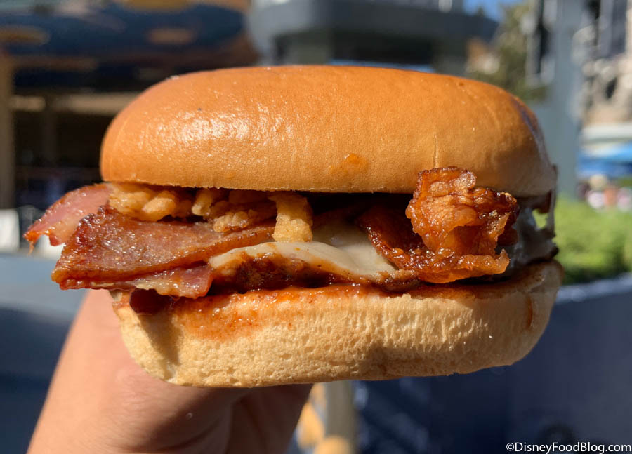 We were surprised by this one mostly because of how small the burger was! This thing is TINY compared to other Disney burgers! We were expecting some serious size and flavor with a gourmet name like Steakhouse Burger. The beef patty was fairly thin, and the bacon and onion were on the soggy side on ours. This is a perfectly fine burger if that’s what you’re in the market for, but we went in expecting a bit more.