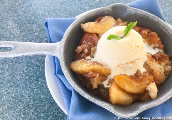 After all our feasting, we were sure to save some room for dessert! Check out this mouthwatering Apple Cobbler, served up hot and fresh right from the skillet! The cold, creamy ice cream was nice and melty over the warm cinnamony baked pieces of apple with bits of sweet, tasty streusel bits scattered about!