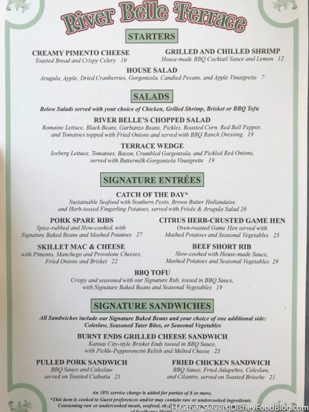 Here’s the new River Belle Terrace menu we were given at the restaurant! As you can see, there’s now a Burnt Ends Grilled Cheese Sandwich that we’re dying to try! Online, the sandwich is listed as a “seasonal offering”, although on the River Belle Terrace’s physical menu it simply appears as a “signature sandwich”, so we’re not sure if it’s sticking around for a while or not — either way, we’re not taking any chances!