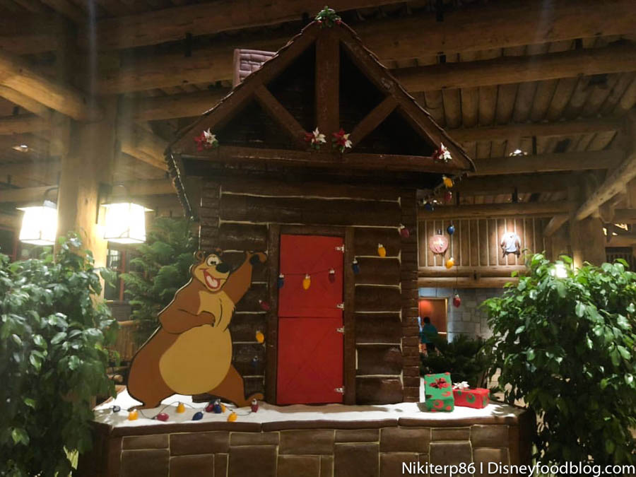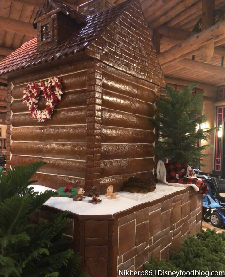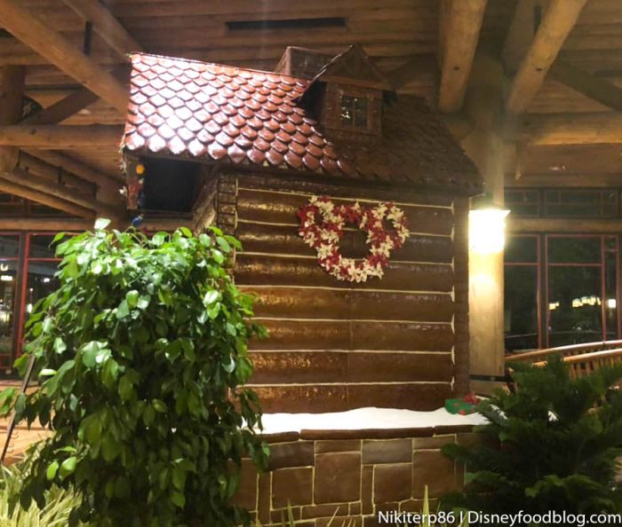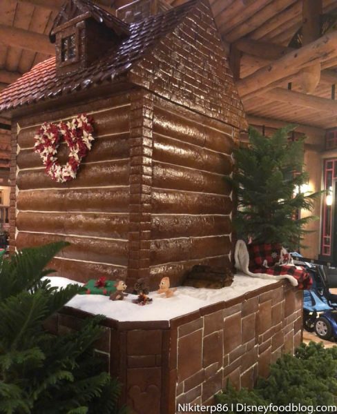 We’re LOVING the finished Gingerbread Cabin! It fits right into the lobby of the Wilderness Lodge, welcoming guests with a big “Merry Christmas!” during their stay. Do you think they’d give us a room key to visit the inside??