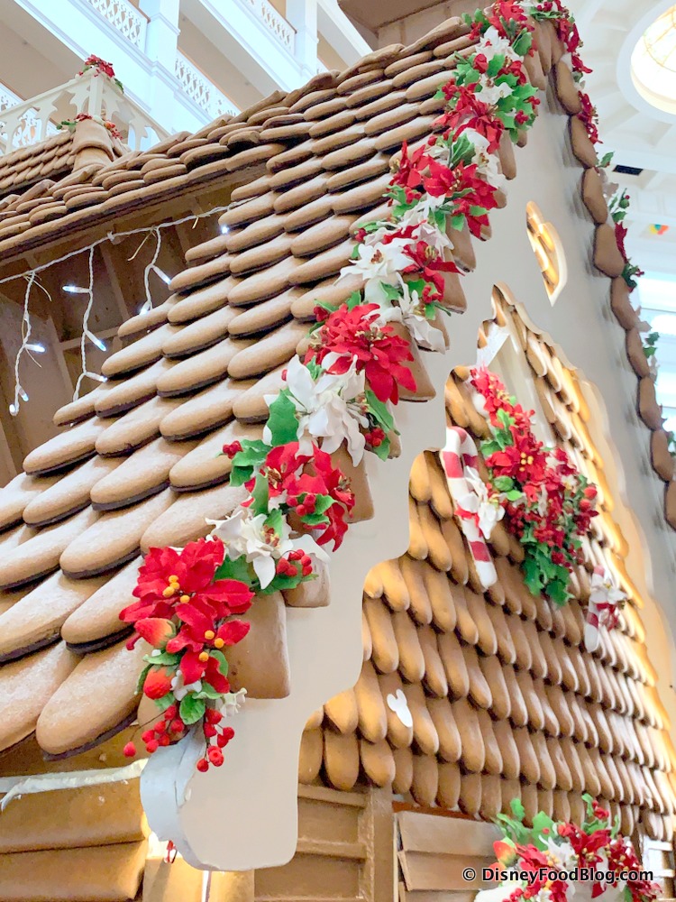 The Grand Floridian’s Gingerbread House is completely surrounded by poinsettias making this impressive holiday display all the more magical! They’re even lining the eaves of its rooftop!