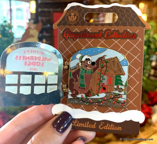 And it just wouldn’t be a Disney World gingerbread display without its own merch — check out the exclusive 2019 Disney’s Wilderness Lodge Gingerbread Collection Pin for $17.99.