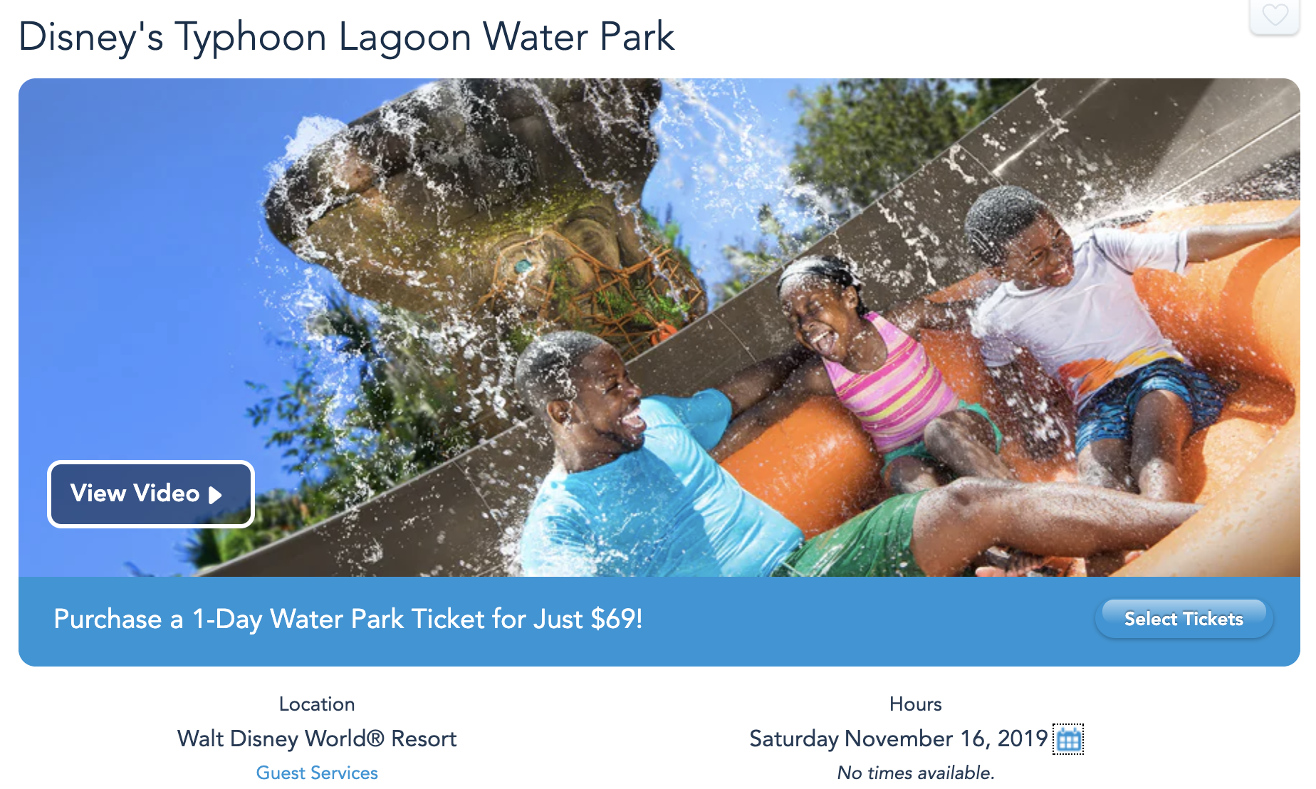 Typhoon Lagoon is showing “no times available” on its webpage for November 16th and November 17th, and since Blizzard Beach is currently closed for refurbishment, there won’t be any waterparks open in Disney World this weekend!