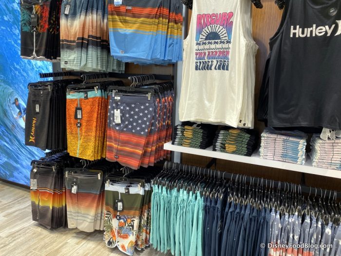 We also spotted this entire wall of board shorts and tank tops for the bros…