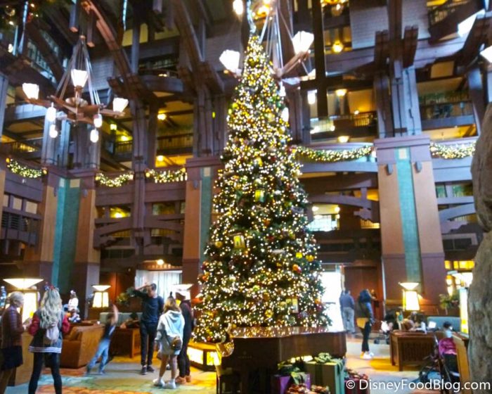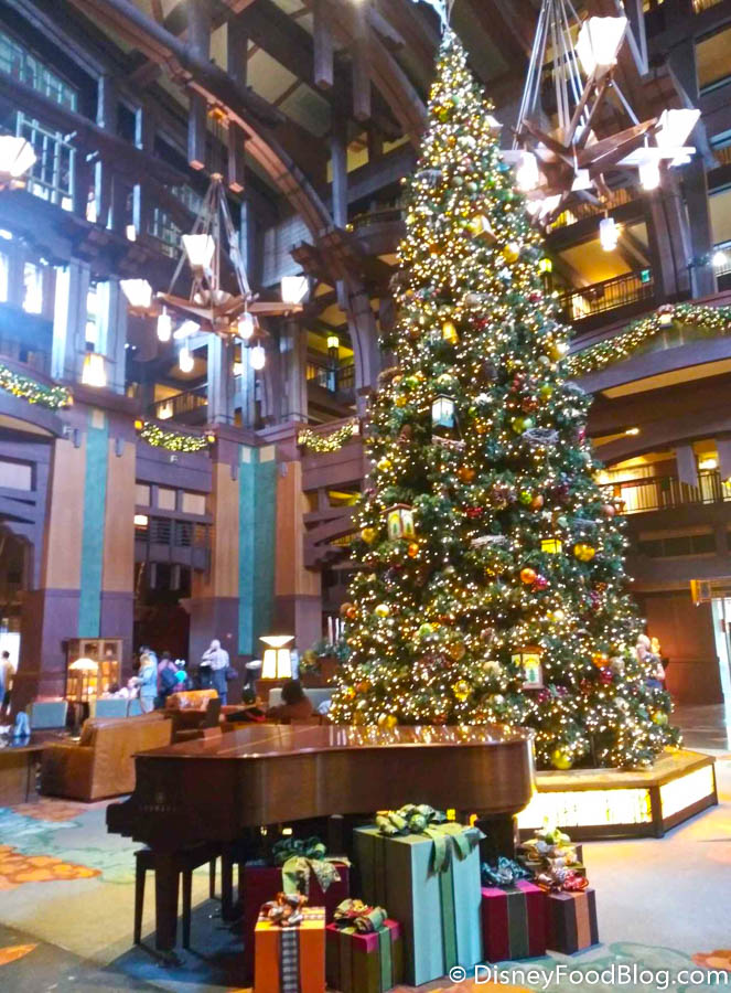 And, of course, the atmosphere wouldn’t be complete if that Gingerbread house wasn’t nestled in a lobby that’s completely covered in Christmas cheer! There’s some gorgeous garland on the walls and balconies of the lobby and a towering Christmas tree!