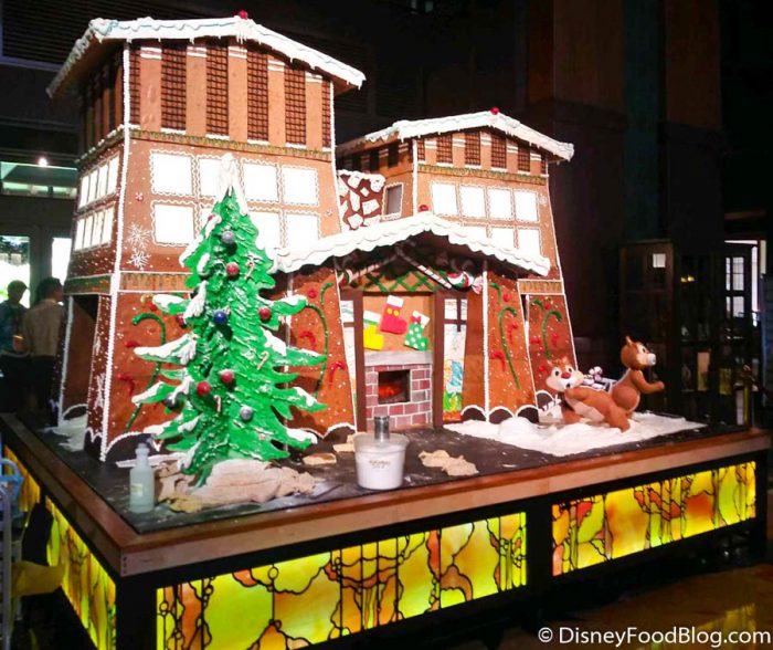Let’s start off by swinging by the Grand Californian which has a pretty interesting holiday fixture — a MASSIVE gingerbread house! Sure, this fixture is a lot smaller than the monolithic structure at Disney World’s Grand Floridian, but it is still super impressive! While it looks like it’s still under awaiting finishing touches, we’re still in love.