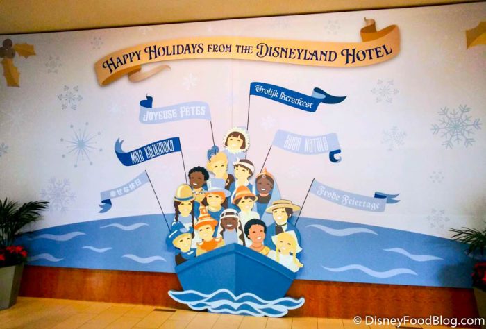 Over at the whimsical Disneyland Hotel, there are some super cute and unique decorations too! Look at this adorbs holiday display with “Happy Holidays” written in a variety of languages! This could be a super cute photo op.