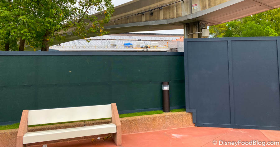As usual, we checked in on the construction over at Guardians of the Galaxy: Cosmic Rewind. There’s another construction barrier up so it’s difficult to see from guest areas but construction seems to be moving along.