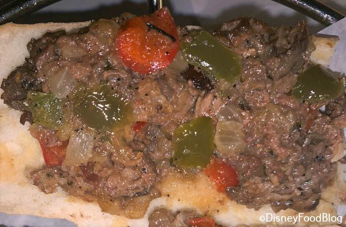 “Thinly” sliced didn’t quite seem to be the right description for the beef — it was more reminded us of taco meat when it came to consistency. It made the sandwich rather messy — with lots of filling coming out of the bottom when you picked it up. That said, it was rather tasty! The peppers and onions added a much-needed dash of flavor and really kicked up the beef. But HOW WAS THE BEER CHEESE?