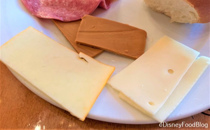 First up, the meat and cheese plate. (This is DFB after all…and WE LOVE CHEESE.) We sampled a few slices of each cheese (Munster, Swiss, and Geitost — the brown one), as well as some meat (turkey and salami), and beet and bean salads.