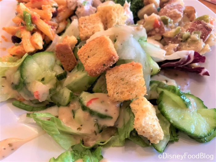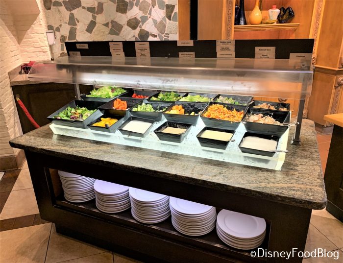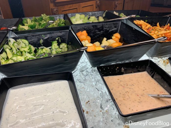 First up, the salad bar. There are all the necessary fixins’ to make a yummy salad. While this isn’t super exciting, it’s sometimes nice to enjoy some greens amongst all the carby, sugary goodness that is eating in Walt Disney World.